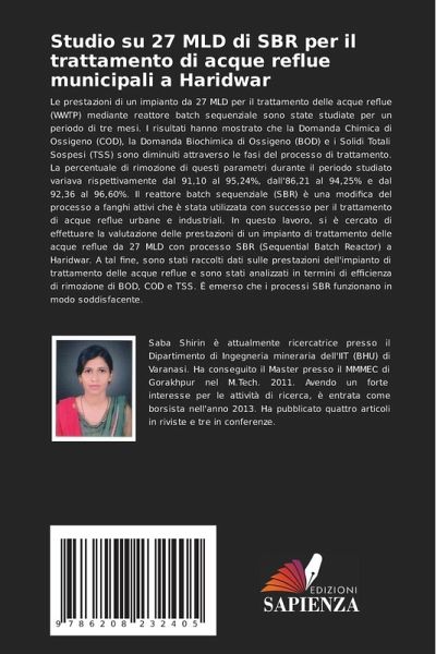 Le prestazioni di un impianto da 27 MLD per il trattamento delle acque reflue (WWTP) mediante reattore batch sequenziale sono state studiate per un periodo di tre mesi. I risultati hanno mostrato che la Domanda Chimica di Ossigeno (COD), la Domanda Biochimica di Ossigeno (BOD) e i Solidi Totali Sospesi (TSS) sono diminuiti attraverso le fasi del processo di trattamento. La percentuale di rimozione di questi parametri durante il periodo studiato variava rispettivamente dal 91,10 al 95,24%, dall'86,21 al 94,25% e dal 92,36 al 96,60%. Il reattore batch sequenziale (SBR) è una modifica del processo a fanghi attivi che è stata utilizzata con successo per il trattamento di acque reflue urbane e industriali. In questo lavoro, si è cercato di effettuare la valutazione delle prestazioni di un impianto di trattamento delle acque reflue da 27 MLD con processo SBR (Sequential Batch Reactor) a Haridwar. A tal fine, sono stati raccolti dati sulle prestazioni dell'impianto di trattamento delle acque reflue e sono stati analizzati in termini di efficienza di rimozione di BOD, COD e TSS. È emerso che i processi SBR funzionano in modo soddisfacente.