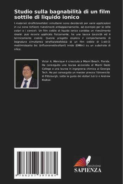 I materiali idrofili/oleofobici simultanei sono desiderati per varie applicazioni in cui sono richiesti rivestimenti antiappannamento, ad esempio per le celle solari o i sensori. Un film sottile di liquido ionico sarebbe un rivestimento ideale: può essere applicato fisicamente, ha una bassa tossicità ed è termicamente stabile. Questo progetto esplora il comportamento di bagnatura simultanea idrofila/oleofobica di un film sottile di 1-etil-3-metilimidazolio bis (trifluorometilsolfonil) imide (EMIIm) su un substrato di silice.
