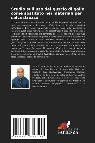 Lo sforzo di preservare il granito e la sabbia (aggregati naturali) per la prossima invenzione e di ridurre i rifiuti di guscio di gallo provenienti dall'industria della pesca ha portato a ulteriori studi sulla possibilità di integrare questi rifiuti nell'impasto del calcestruzzo. Il progetto ha analizzato la lavorabilità, la resistenza alla compressione e alla trazione di calcestruzzi contenenti varie percentuali di guscio di gallo come parziale sostituzione di aggregati grossi e fini. I calcestruzzi con percentuali di sostituzione del guscio di gallo comprese tra lo 0 e il 30% a intervalli del 5% sono stati gettati in forma di cubi e cilindri prima di essere sottoposti a stagionatura in acqua per 7 giorni, 14 giorni, 28 giorni e 90 giorni. In questo caso, le sostituzioni degli aggregati grossi e fini sono state effettuate separatamente e in modo combinato. Le prove di lavorabilità, compressione e trazione sono state condotte secondo la norma IS 456.
