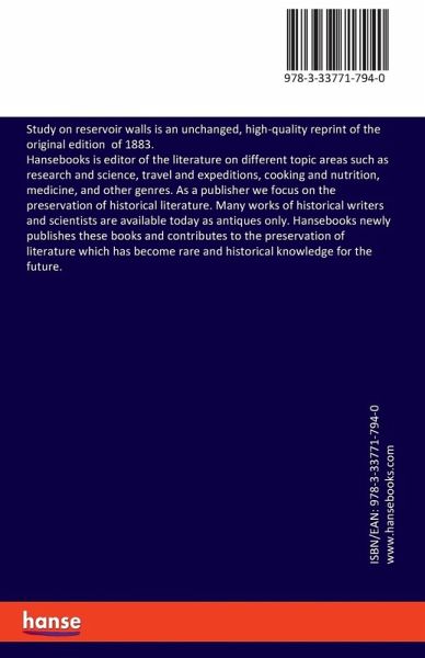 Study on reservoir walls is an unchanged, high-quality reprint of the original edition of 1883.