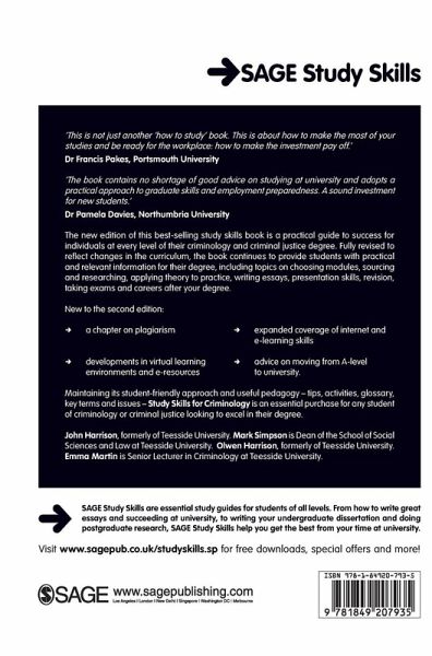 Maintaining its student-friendly approach and useful pedagogy - tips, activities, glossary, key terms and issues - Study Skills for Criminology is an essential purchase for any student of criminology or criminal justice looking to excel in their degree.