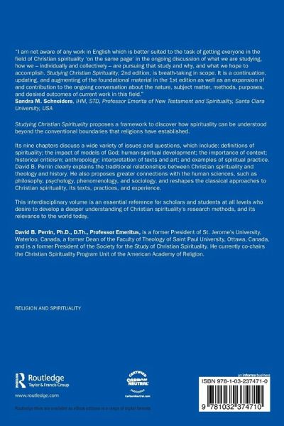 Its nine chapters discuss a wide variety of issues and questions, which include: definitions of spirituality; the impact of models of God; human-spiritual development; the importance of context; historical criticism; anthropology; interpretation of texts and art; and examples of spiritual practice. David B. Perrin clearly explains the traditional relationships between Christian spirituality and theology and history. He also proposes greater connections with the human sciences, such as philosophy, psychology, phenomenology, and sociology, and reshapes the classical approaches to Christian spirituality, its texts, practices, and experience.