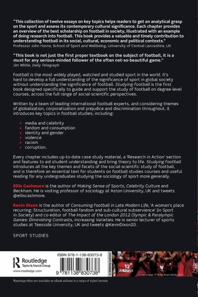 Football is the most widely played, watched and studied sport in the world. It's hard to develop a full understanding of the significance of sport in global society without understanding the significance of football. Studying Football is the first book designed specifically to guide and support the study of football on degree-level courses, across the full range of social-scientific perspectives. Written by a team of leading international football experts, and considering themes of globalization, corporatization and prejudice and discrimination throughout, it introduces key topics in football studies, including: media and celebrity identity, fandom and consumption gender violence racism corruption Every chapter includes up-to-date case study material, a 'Research in Action' section and features to aid student understanding and bring theory to life. Studying Football introduces all the key themes and facets of the social-scientific study of football, and is therefore an essential text for students on football studies courses and useful reading for any undergraduates studying the sociology of sport more generally.