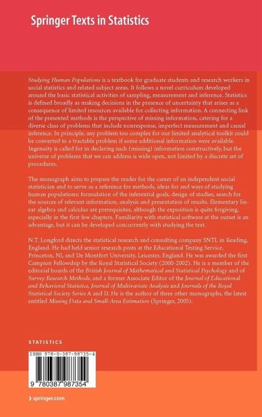 The monograph aims to prepare the reader for the career of an independent social statistician and to serve as a reference for methods, ideas for and ways of studying human populations: formulation of the inferential goals, design of studies, search for the sources of relevant information, analysis and presentation of results. Elementary linear algebra and calculus are prerequisites, although the exposition is quite forgiving, especially in the first few chapters. Familiarity with statistical software at the outset is an advantage, but it can be developed concurrently with studying the text.