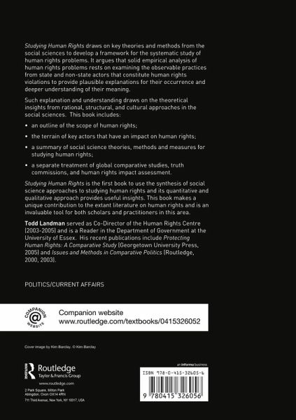 Studying Human Rights is the first book to use the synthesis of social sciences approaches to studying human rights and its quantitative and qualitative approach provides useful insights. This book makes a unique contribution to the existent literature on human rights and is an invaluable tool for both scholars and practitioners of this area.