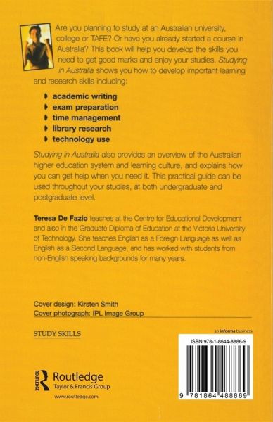 Are you planning to study at university, college or TAFE in Australia? Or have you already started a course in Australia? This book will help you develop the skills you need to get good marks and enjoy your studies. Studying in Australia shows you how to develop important learning and research skills including: - academic writing - exam preparation - time management - library research - using technology Studying in Australia also provides an overview of the Australian higher education system and learning culture, and explains how you can get help when you need it. This practical guide can be used throughout your studies, at both undergraduate and postgraduate level.