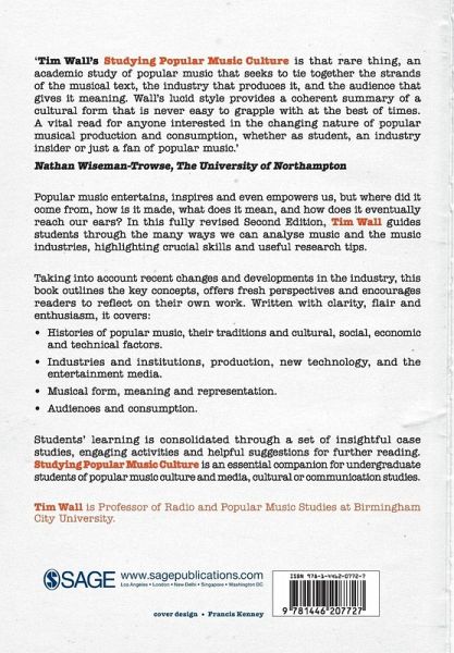Tim Wall's Studying Popular Music Culture is that rare thing, an academic study of music that seeks to tie together the strands of the musical text, the industry that produces it, and the audience that gives it meaning. Wall acts as a wary guide to an industry that is currently in total flux, showing the reader how conventional histories of popular music are shaped by social, industrial and technical factors that ultimately leak over into the ways in which we listen to and interpret music. The new edition provides a timely account of the history of the recorded music industry as it responds to new technologies and industrial approaches, with an ever-keen eye on how industrial practice relates to the ways in which audiences consume and use popular music in a variety of ways. Wall's lucid style provides a coherent summary of a cultural form that is never easy to grapple with at the best of times. Studying Popular Music Culture is a vital read for anyone interested in the changing nature of popular music production and consumption, whether as student, an industry insider or just a fan of popular music.