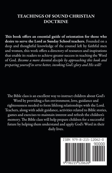 This book offers an essential guide of orientation for those who desire to serve the Lord as Sunday School teachers. Founded on a deep and thoughtful knowledge of the counsel left by faithful men and women, this work offers a directory of resources and inspirations that enable its readers to achieve greater success in teaching the Word of God. Become a more devoted disciple by approaching this book and preparing yourself to serve better, invoking God's glory and His will!