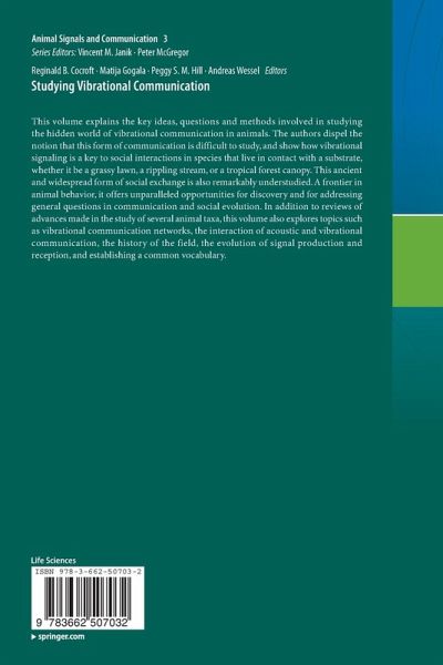 "Studying Vibrational Communication is a significant contribution and starting point for understanding this mode of communication. ... For anyone interested in vibrational communication or the evolution of animal communication, this is a must read whether it is from cover to cover or one of the selected chapters. This volume is thought-provoking, informative, a useful reference, and an up-to-date summary of the current and past knowledge of vibrational communication in insects." (Richard W. Hofstetter, The Quarterly Review of Biology, Vol. 90 (3), September, 2015)