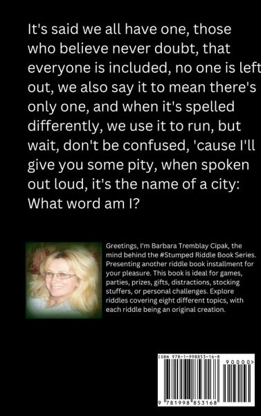 How smart are you? ... Can you solve this riddle? Ready? Here it is: It's said we all have one, those who believe never doubt, that everyone's included, no one is left out, we also say it to mean there's only one, and when it's spelled differently, we use it to run, but wait, don't be confused, 'cause I'll give you some pity, when spoken out loud, it's the name of a city, What word am I? Did you figure out the riddle answer? NOT YOUR TYPICAL RIDDLES: Mostly all are in a longer RHYMING, What-Am-I, FormatAND You won't find any old, rehashed riddles in this book - All of the riddles are Original. ... AND best of all, this School Riddle Book is also a game! Or, if you prefer, it's your own personal school-related mind exercise book. What You Get with School Riddles:Only original, uniquely written riddles! Eight chapter topics Riddles in photo format (not just boring text!) Use the riddles in games, for teachers, parties, gifts, contests, or personal challenge All riddles are written in the "What Am I" format Teachers can write a riddle a day on the chalkboard! Family-friendly Answers at the back of the book The riddle book chapters are broken down into the following school subject categories: MusicMusic Art History Health Geography Math Business Physical Education You'll love this book because the riddles are one-of-a-kind, fun, and easy to read, and it makes a great around-the-table game for classrooms or family gatherings.