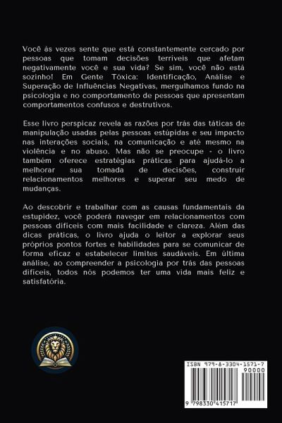 Portuguese Language Edition: Do you sometimes feel that you are constantly surrounded by people who make terrible decisions that negatively affect you and your life? If so, you're not alone! In The Stupid People, we take a deep dive into the psychology and behavior of people who exhibit confusing and destructive behaviors. This insightful book reveals the reasons behind the manipulative tactics used by stupid people and their impact on social interactions, communication, and even violence and abuse. But don't worry-the book also offers practical strategies to help you improve your decision-making, build better relationships, and overcome your fear of change. By uncovering and working through the root causes of stupidity, you can navigate relationships with difficult people with greater ease and clarity. Beyond practical tips, the book helps readers tap into their own strengths and abilities to communicate effectively and set healthy boundaries. Ultimately, by understanding the psychology behind difficult people, we can all live happier and more fulfilling lives. Full Description: Você às vezes sente que está constantemente cercado por pessoas que tomam decisões terríveis que afetam negativamente você e sua vida? Se sim, você não está sozinho! Em Gente Tóxica: Identificação, Análise e Superação de Influências Negativas, mergulhamos fundo na psicologia e no comportamento de pessoas que apresentam comportamentos confusos e destrutivos. Esse livro perspicaz revela as razões por trás das táticas de manipulação usadas pelas pessoas estúpidas e seu impacto nas interações sociais, na comunicação e até mesmo na violência e no abuso. Mas não se preocupe - o livro também oferece estratégias práticas para ajudá-lo a melhorar sua tomada de decisões, construir relacionamentos melhores e superar seu medo de mudanças. Ao descobrir e trabalhar com as causas fundamentais da estupidez, você poderá navegar em relacionamentos com pessoas difíceis com mais facilidade e clareza. Além das dicas práticas, o livro ajuda o leitor a explorar seus próprios pontos fortes e habilidades para se comunicar de forma eficaz e estabelecer limites saudáveis. Em última análise, ao compreender a psicologia por trás das pessoas difíceis, todos nós podemos ter uma vida mais feliz e satisfatória.