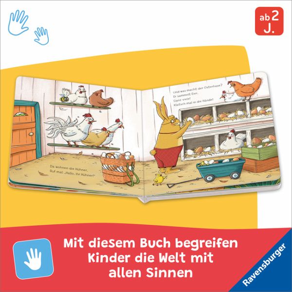 Nimm es in die Hände und schon schlüpft ein kleines Küken. Wo steckt Mama Huhn? Schnell, ruf sie doch! Eine lustig-liebevolle Ostergeschichte mit abwechlungsreichen Mitmach-Momenten.