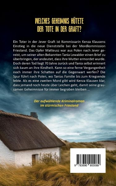 Dieser Krimi führt den Leser nach Jever und zur Kommissarin Kenza Klausen. Sie arbeitet seit kurzem bei der Mordkommission Wilhelmshaven und ist noch dabei sich einzuleben, als ein Mord Jever aufschreckt. Und schon muss Kenza sich als neue Chefin durchsetzen, denn nicht alle Kollegen sind ihr