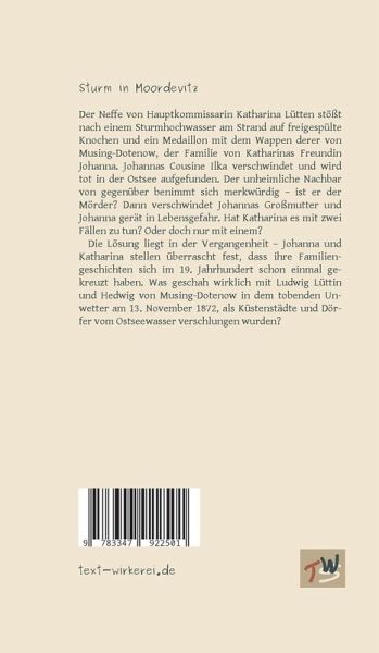 Das Buch spielt auf zwei Zeitebenen: einmal heute und einmal im Jahr 1872. Die Kapitel wechseln sich jeweils ab und sind relativ kurz, man switcht also ständig hin und her. Das fiel mir jedoch nicht schwer, diese schnellen Wechsel fand ich gelungen, weil ich so nahezu zeitgleich beide Geschichten erleben konnte. Und ich weiß gar nicht, welche mir besser gefallen hat: die von heute oder die historische. Die heutige schön humorvoll, die historische sehr ergreifend. Die historischen Kapitel haben einen Auszug aus der damaligen Zeitung vorneweg, in dieser nicht ganz so leicht zu lesenden altdeutschen Schrift. Es gibt auch einige hübsche s/w-Illustrationen aus der Gegend. Der Schreibstil ist sehr gut zu lesen, lebendig und bildhaft. Ich hatte die ganze Zeit einen Film vor Augen. Es handelt sich um den 2. Band dieser Reihe. Band 1 kenne ich nicht, ich hatte aber nicht das Gefühl, dass mir was fehlte. Was die Handlung betrifft: man könnte sich jetzt drüber streiten, ob die Polizei wirklich so vorgehen würde, wie das hier der Fall war und ob das alles so Hand und Fuß hatte. Aber nein, ich streite darüber nicht. Denn mir hat es so wie es ist gefallen. Netter, humorvoller Krimi, bewegender historischer Teil, bildhafte Figuren und im hinteren Teil dann noch Fakten zum Sturmhochwasser 1872, ein Glossar mit Erklärungen zu den im Buch vorkommenden, vielleicht teilweise nicht ganz bekannten (zum Teil plattdeutschen) Begriffen und eine Karte der fiktiven Gegend um Moordevitz . Was will man mehr? Sehr gute 4/5 Sterne.