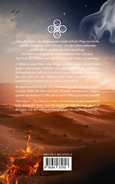 »Aus den Zeiten des Vergessenen windet sich ein Weg aus Asche und Blut. Ein Leben voller Schmerz, von der Liebe entfremdet, in dem die Dunkelheit das Licht verschlingt. Wo Stahl auf Magie trifft, entscheidet sich das Schicksal. Am Ende des Pfades lauert der Tod mit seiner kalten Umarmung.«In Altheria, einer Welt voller Magie und Schrecken, kämpft Cassi gegen unerwartete Gefühle und lebensbedrohliche Gefahren. Währenddessen stellt sich Iuna ihrer eigenen Wahrheit. Dabei muss sie sich nicht nur von Weylins Liebe lösen, sondern auch der unerklärlichen Anziehung zu Caiden widerstehen.Als die Dunkelheit dichter wird und nach ihr greift, steht sie plötzlich vor einer Wahl, die alles verändert. Wird der Schatten ihrer Vergangenheit sie zerstören? Oder gibt es noch Hoffnung auf eine Zukunft?»Sturmfeuer - Der Weg aus Liebe und Schmerz« ist der zweite Band einer fesselnden Reise über die Macht der Selbstfindung, die Kraft der Liebe und den erbitterten Kampf gegen die eigene Dunkelheit.