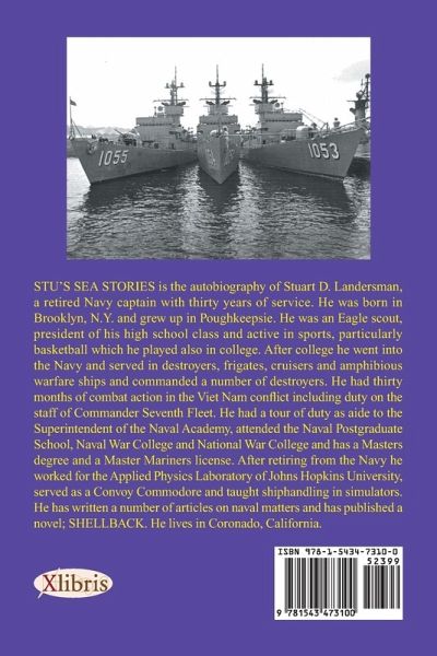 STUS SEA STORIES is the autobiography of Stuart D. Landersman, a retired Navy captain with thirty years of service. He was born in Brooklyn, N.Y. and grew up in Poughkeepsie. He was an Eagle scout, president of his high school class and active in sports, particularly basketball which he played also in college. After college he went into the Navy and served in destroyers, frigates, cruisers and amphibious warfare ships and commanded a number of destroyers. He had thirty months of combat action in the Viet Nam conflict including duty on the staff of Commander Seventh Fleet. He had a tour of duty as aide to the Superintendent of the Naval Academy, attended the Naval Postgraduate School, Naval War College and National War College and has a Masters degree and a Master Mariners license. After retiring from the Navy he worked for the Applied Physics Laboratory of Johns Hopkins University, served as a Convoy Commodore and taught shiphandling in simulators. He has written a number of articles on naval matters and has published a novel; SHELLBACK. He lives in Coronado, California.
