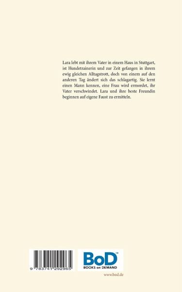 Lara lebt mit ihrem Vater in einem Haus in Stuttgart, ist Hundetrainerin und zur Zeit gefangen in ihrem ewig gleichen Alltagstrott, doch von einem auf den anderen Tag ändert sich das schlagartig. Sie lernt einen Mann kennen, eine Frau wird ermordet, ihr Vater verschwindet. Lara und ihre beste Freundin beginnen, auf eigene Faust zu ermitteln.
