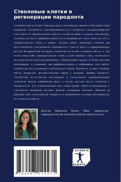 Stwolowye kletki igraüt klüchewuü rol' w regeneracii parodonta blagodarq swoej unikal'noj sposobnosti transformirowat'sq w razlichnye specializirowannye tipy kletok. V parodontal'noj terapii äti kletki imeüt ogromnye perspektiwy, poskol'ku oni mogut differencirowat'sq w opredelennye tkani, takie kak kost', periodontal'naq swqzka i cement, kotorye imeüt reshaüschee znachenie dlq wosstanowleniq i regeneracii powrezhdennyh struktur desen i podderzhiwaüschih kostej. Issledowateli issleduüt razlichnye istochniki stwolowyh kletok, w tom chisle pul'pu zuba, periodontal'nuü swqzku i dazhe zhirowuü tkan', ispol'zuq ih regeneratiwnyj potencial dlq bor'by s zabolewaniqmi parodonta. Jetimi kletkami manipuliruüt i naprawlqüt dlq differencirowki w neobhodimye tipy kletok, sposobstwuq wosstanowleniü i regeneracii tkanej. Terapiq na osnowe stwolowyh kletok predlagaet futuristicheskij podhod k resheniü problem parodonta, sposobstwuq estestwennoj regeneracii i potencial'no rewolücioniziruq strategii lecheniq zabolewanij desen i poteri kostnoj massy, swqzannoj s parodontitom. Jeta wseob#emlüschaq kniga predstawlqet soboj ischerpywaüschee i tschatel'noe izlozhenie metodow lecheniq stwolowymi kletkami, ob#qsnqq ih klüchewuü rol' w regeneracii parodonta i odnowremenno issleduq raznoobraznye istochniki ätih kletok.