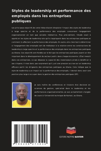 Les principaux objectifs de cette thèse étaient d'explorer l'impact des styles de leadership à large spectre et de la performance des employés concernant l'engagement organisationnel en tant que variable médiatrice. Plus précisément, l'étude visait à apprécier les styles de leadership tels qu'ils s'appliquent dans les entreprises publiques et comment ils affectent la performance des employés. En outre, elle cherchait à déterminer si l'engagement des employés sert de médiateur à la relation entre les constructions de leadership à large spectre et la performance des employés dans les entreprises publiques au Ghana. Ces objectifs sont fondés sur le fait que les entreprises publiques jouent un rôle important dans le développement du secteur public dans chaque économie. L'État investit dans ces entreprises, ce qui dépasse la capacité des investisseurs privés à bénéficier à ses citoyens. Il n'est donc pas surprenant qu'il y ait une pression accrue sur un leadership efficace parmi les dirigeants des entreprises publiques au Ghana. Cela indique que le style de leadership a un impact sur la performance des employés, il devrait donc avoir une position plus large à occuper dans la gestion des entreprises publiques (EP).