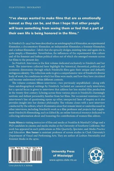 The first volume dedicated exclusively to Su Friedrich and her work. The interviews collected here highlight the historical, theoretical, political, and economic dimensions through which Friedrichâ s films gain their unique and defiantly ambiguous identity.