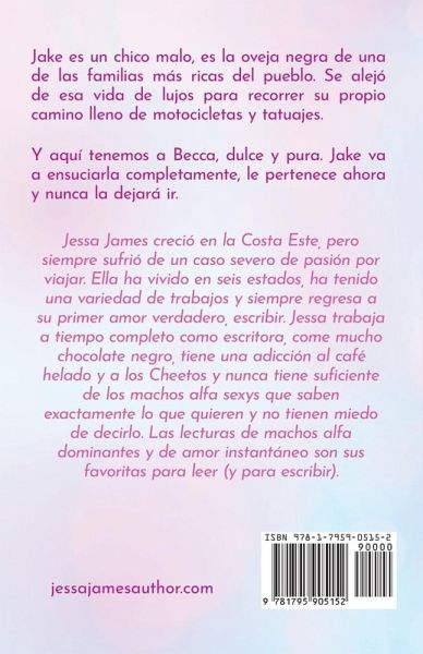 Jake es un chico malo, es la oveja negra de una de las familias más ricas del pueblo. Se alejó de esa vida de lujos para recorrer su propio camino lleno de motocicletas y tatuajes. Y aquí tenemos a Becca, dulce y pura. Jake va a ensuciarla completamente, le pertenece ahora y nunca la dejará ir.