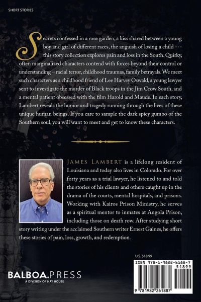 Secrets confessed in a rose garden, a kiss shared between a young boy and girl of different races, the anguish of losing a child --- this story collection explores pain and loss in the South. Quirky, often marginalized characters contend with forces beyond their control or understanding - racial terror, childhood traumas, family betrayals. We meet such characters as a childhood friend of Lee Harvey Oswald, a young lawyer sent to investigate the murder of Black troops in the Jim Crow South, and a mental patient obsessed with the film Harold and Maude. In each story, Lambert reveals the humor and tragedy running through the lives of these unique human beings. If you care to sample the dark spicy gumbo of the Southern soul, you will want to meet and get to know these characters.