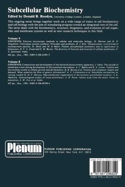 The broad aim of this series is to work toward "an integrated view of the cell. " It is perhaps fitting that this tenth volume, corresponding to roughly a decade of endeavor in this direction, should cover a wide range of topics from appar ently disparate subject areas and yet reveal a strong underlying unity of approach in each topic. The unifying element is the remarkable extent to which diverse biological processes can now be described (even if not fully explained) in terms of fundamental molecular biology. Chapter 1, by R. Douce, M. A Block, A-J. Dome, and J. Joyard, surveys the great advances that have been made in our understanding of the properties, functions, and biogenesis of plastid envelope membranes. In Chapter 2, G. A Peschek deals in a most comprehensive way with respiratory membranes of cyanobacteria (blue-green algae); his article fills a gap in the literature in a subject that is now attracting increasing attention. R. Sentandreu, E. Herrero, J. P. Martinez-Garcia, and G. Larriba then describe in Chapter 3 the impor tant advances that have been made in our understanding of the structure and biogenesis of the yeast cell wall. B. B. Biswas, B. Ghosh, and A L. Majumder deal in Chapter 4 with a generally neglected area, namely, the role of myo inositol polyphosphates in metabolism. They propose an interesting metabolic cycle involving glucose-6-phosphate and myo-inositol phosphates; this cycle may well be of general importance in many cell types. In Chapter 5, P. S.