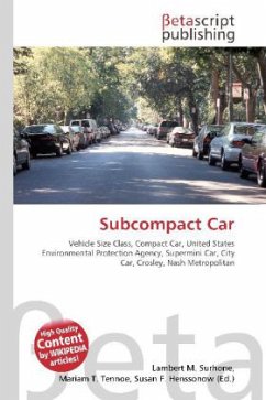 Please note that the content of this book primarily consists of articles available from Wikipedia or other free sources online. A subcompact car is a North American term used to describe any automobiles whose class size is smaller than that of a compact car (usually not exceeding 165 inches (4,191 mm) in length), but larger than a microcar. According to the United States Environmental Protection Agency (EPA), a passenger car is classified as subcompact if it has between 85 cubic feet (2,407 L) and 99 cu ft (2,803 L) of interior volume. Therefore, many contemporary cars branded as "subcompact" in North America fall into either the supermini or the city car category (as defined by Euro NCAP) in Europe.