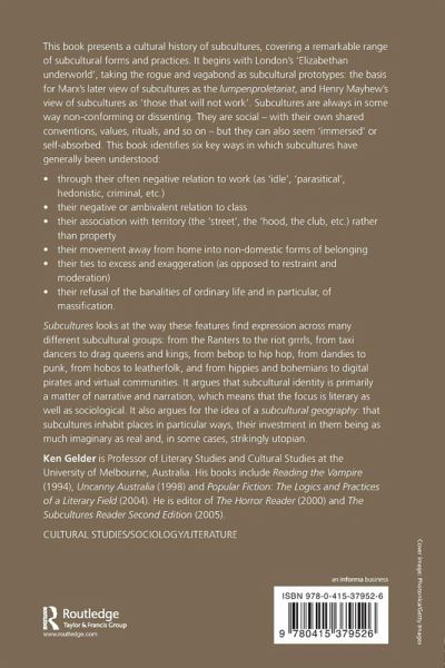 This book presents a cultural history of subcultures, covering a remarkable range of subcultural forms and practices. It begins with London's 'Elizabethan underworld', taking the rogue and vagabond as subcultural prototypes: the basis for Marx's later view of subcultures as the lumpenproletariat, and Henry Mayhew's view of subcultures as 'those that will not work'. Subcultures are always in some way non-conforming or dissenting. They are social - with their own shared conventions, values, rituals, and so on - but they can also seem 'immersed' or self-absorbed. This book identifies six key ways in which subcultures have generally been understood: through their often negative relation to work: idle, parasitical, hedonistic, criminal their negative or ambivalent relation to class their association with territory - the 'street', the 'hood', the club - rather than property their movement away from home into non-domestic forms of 'belonging' their ties to excess and exaggeration (as opposed to restraint and moderation) their refusal of the banalities of ordinary life and in particular, of massification. Subcultures looks at the way these features find expression across many different subcultural groups: from the Ranters to the riot grrrls, from taxi dancers to drag queens and kings, from bebop to hip hop, from dandies to punk, from hobos to leatherfolk, and from hippies and bohemians to digital pirates and virtual communities. It argues that subcultural identity is primarily a matter of narrative and narration, which means that its focus is literary as well as sociological. It also argues for the idea of a subcultural geography: that subcultures inhabit places in particular ways, their investment in them being as much imaginary as real and, in some cases, strikingly utopian.