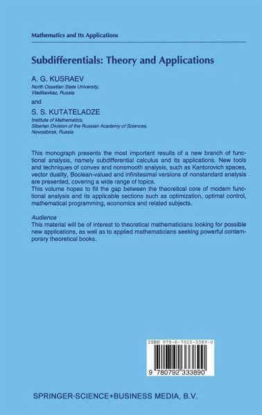 This monograph presents the most important results of a new branch of functional analysis: subdifferential calculus and its applications. New tools and techniques of convex and nonsmooth analysis are presented, such as Kantorovich spaces, vector duality, Boolean-valued and infinitesimal versions of nonstandard analysis, etc., covering a wide range of topics.