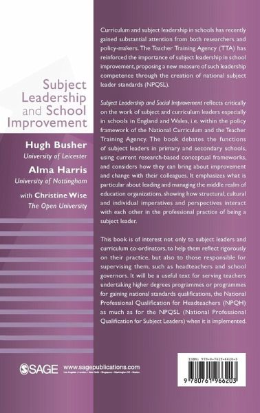 Curriculum and subject leadership in schools has recently gained substantial attention from both researchers and policy-makers. The Teacher Training Agency (TTA) has reinforced the importance of subject leadership in school improvement, proposing a new measure of such leadership competence through the creation of national subject leader standards (NPQSL). Subject Leadership and School Improvement reflects critically on the work of subject and curriculum leaders especially in schools in England and Wales, that is, those within the policy framework of The National Curriculum and the Teacher Training Agency. The book debates the functions of subject leaders in primary and secondary schools, using current research-based conceptual frameworks, and considers how they can bring about improvement and change with their colleagues in their subject areas. It emphasizes what is particular about leading and managing the middle realm of education organizations, showing how structural, cultural and individual imperatives and perspectives interact with each other in the professional practice of being a subject leader. The book is of interest not only to subject leaders and curriculum co-ordinators, to help them reflect rigorously on their practice, but also to those responsible for supervising them, such as headteachers and school governors, as well as for those accountable to them. It will be a useful text for serving teachers undertaking higher degrees programmes or programmes for gaining national standards qualifications, the National Professional Qualification for Headteachers (NPQH) as much as for the NPQSL (National Professional Qualification for Subject Leaders) when it is implemented.