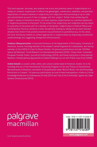 1. 0. Introducing a Contorted Subject Called 'Subjectivation'. Andreas Oberprantacher & Andrei Siclodi.- 2. Section 1: Re-Tracing Subjectivation.- 3. 1. After the Subject is Before the Subject: On the Political Meaning of Subjectivation in Nancy and Lacoue-Labarthe. Artur R. Boelderl.- 4. 2. The Excruciating Work of Love ...On Foucault's Kehre towards the Subject. Andrea Mubi Brighenti.- 5. 3. On Theories of Subjectivity and the Practices of Political Subjectivation: Responsiveness, Dissent, and the Precarious Livability of Human Life. Burkhard Liebsch.- 6. 4. Political Subjectivation and Metaphysical Movement. Sandra Lehmann.- 7. Section 2: Subjectivation in a Variety of Contemporary Practices.- 8. 5. Outraging Speech: On the Politics of Performative Contradictions. Gerhard Posselt.- 9. 6. Practices of Life and the Religious Character of Capitalism: An Analysis Through Weber, Benjamin, and Foucault. Elettra Stimilli.- 10. 7. Presentist Democracy: The Now-Time of Struggles. Isabell Lorey.- 11. 8. Transitory Erasures: Subjects of Institutional Critique. Vlad Morariu.- 12. Section 3: At the Limits of Subjectivation.- 13. 9. Breaking Out of the Cycle of Fear: Exodus Politics. Andreas Hetzel.- 14. 10. Humor, Revolt, and Subjectivity. Serhat Karakayali and Özge Yaka.- 15. 11. Metropolitan Stasis@Real Democracy@Post-Representative Hegemony: On the Sociology of 'Social Non-Movements' and Assemblies. Vassilis S. Tsianos.- 16. 12. From Mute Objects to Militant Subjects: The Politics of Rebellious Animals. Aylon A. Cohen.- 17. s and Alexandra Délano.- 20. 15. Radical Democratic Disobedience: 'Illegals' as a Litigious Political Subject. Andreas Oberprantacher.- 21. 16. Subjectivating the 'Other'? Critical Art Practices, Migration Politics, and the Public Sphere in Europe.- Andrei Siclodi.- Index.