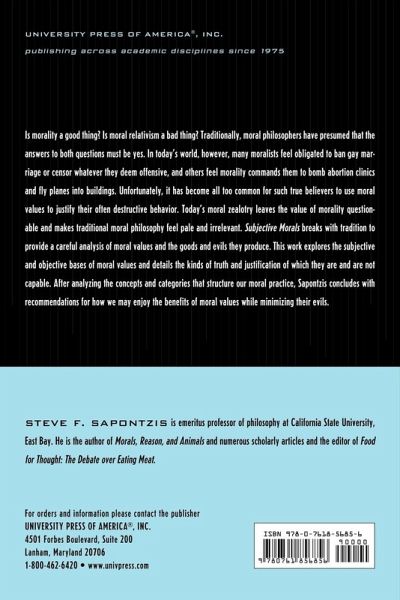 Subjective Morals breaks with tradition to provide a careful analysis of moral values and the goods and evils they produce. Sapontzis explores the subjective and objective bases of moral values and analyzes the concepts and categories that structure our moral practice.