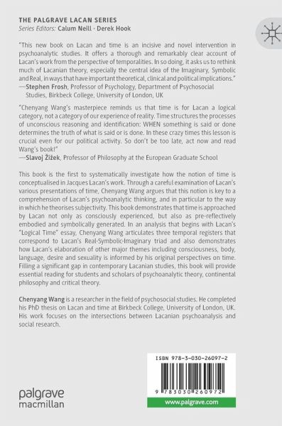 This book is the first to systematically investigate how the notion of time is conceptualised in Jacques Lacan's work. Through a careful examination of Lacan's various presentations of time, Chenyang Wang argues that this notion is key to a comprehension of Lacan's psychoanalytic thinking, and in particular to the way in which he theorises subjectivity. This book demonstrates that time is approached by Lacan not only as consciously experienced, but also as pre-reflectively embodied and symbolically generated. In an analysis that begins with Lacan's "Logical Time" essay, Chenyang Wang articulates three temporal registers that correspond to Lacan's Real-Symbolic-Imaginary triad and also demonstrates how Lacan's elaboration of other major themes including consciousness, body, language, desire and sexuality is informed by his original perspectives on time. Filling a significant gap in contemporary Lacanian studies, this book will provide essential reading for students and scholars ofpsychoanalytic theory, continental philosophy and critical theory.