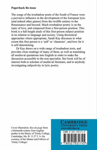 This book studies the first-person position adopted by many of the medieval troubadours of southern France in its relation to language and society.