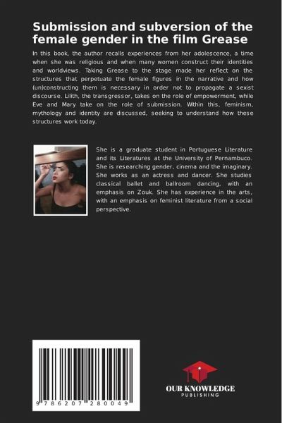 In this book, the author recalls experiences from her adolescence, a time when she was religious and when many women construct their identities and worldviews. Taking Grease to the stage made her reflect on the structures that perpetuate the female figures in the narrative and how (un)constructing them is necessary in order not to propagate a sexist discourse. Lilith, the transgressor, takes on the role of empowerment, while Eve and Mary take on the role of submission. Within this, feminism, mythology and identity are discussed, seeking to understand how these structures work today.