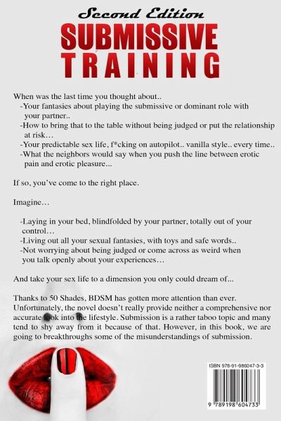 Pain and pleasure. Punishment and reward. Is that was BDSM is all about? It's a huge misunderstanding that BDSM is just about punishing the Sub. BDSM is much deeper than that. It's a safe sexual role-playing game on many different levels. The physical level is one, but there's more. What's so exciting about BDSM is that the Sub is involved in everything that's going on, if he or she is properly trained. If you are into BDSM to spice up your sex life, or if you are a hardcore BDSM lover looking to expand your knowledge, this book - book number five in the BDSM For Beginners Series, is for you. This book gives you everything you need in your submissive role to get the most out of your BDSM adventures, including:the submissive mindset how to be in control even though you aren't expressing your desires communication punishments how submission is good for you misunderstandings of submission and much more! Are you ready to start your submissive training?