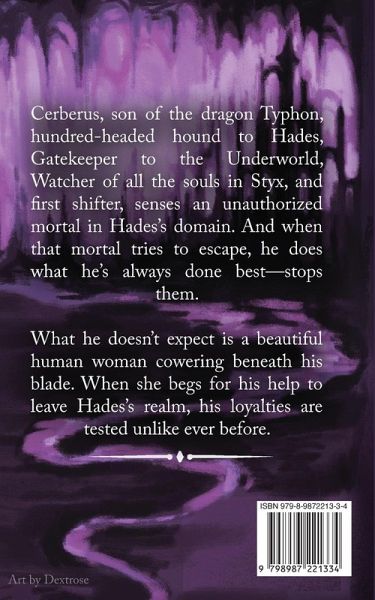 Cerberus, son of the dragon Typhon, hundred-headed hound to Hades, Gatekeeper to the Underworld, Watcher of all the souls in Styx, and first shifter, senses an unauthorized mortal in Hades's domain. And when that mortal tries to escape, he does what he's always done best-stops them. What he doesn't expect is a beautiful human woman cowering beneath his blade. When she begs for his help to leave Hades's realm, his loyalties are tested unlike ever before.