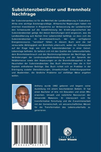 Der Subsistenzanbau ist für die Mehrheit der Landbevölkerung in Subsahara-Afrika eine wichtige Existenzgrundlage. Afrikanische Regierungen haben mit enormen Investitionen in Programme zur Verbesserung der Landwirtschaft den Schwerpunkt auf die Gewährleistung der Ernährungssicherheit der Subsistenzbesitzer gelegt. Bei diesen Bemühungen wird vergessen, was die Landbevölkerung zum Kochen ihrer Lebensmittel befähigt, so dass sich die Subsistenzbesitzer im Brennholzverbrauch, der lokal verfügbaren Energieressource, "versklavt" fühlen. In diesem Buch wird die tief verwurzelte Abhängigkeit von Brennholz untersucht, wobei der Schwerpunkt auf der Frage liegt, wie sich die Subsistenzbesitzer in einer Geisel-Lebenslage befinden. Es befasst sich mit den Quellen des Lebensunterhalts, dem Brennholzverbrauch und den Bestimmungsfaktoren der Nachfrage, den Veränderungen der Landnutzung/Bodenbedeckung und der Dynamik der Holzbiomasse sowie den Anpassungen an die Brennholzknappheit in den Haushalten der Subsistenzbesitzer. Das Buch informiert über die in fünf Kapiteln enthaltenen Beiträge. Das Buch richtet sich an Praktiker in der Erbringung sozialer Dienstleistungen, Umweltschützer, Entwicklungspartner und Akademiker, die ländliche Probleme auf vielfältige Weise angehen wollen.