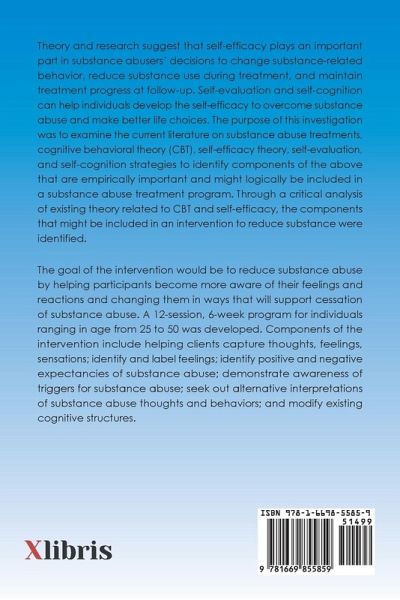 Theory and research suggest that self-efficacy plays an important part in substance abusers' decisions to change substance-related behavior, reduce substance use during treatment, and maintain treatment progress at follow-up. Self-evaluation and self-cognition can help individuals develop the self-efficacy to overcome substance abuse and make better life choices. The purpose of this investigation was to examine the current literature on substance abuse treatments, cognitive behavioral theory (CBT), self-efficacy theory, self-evaluation, and self-cognition strategies to identify components of the above that are empirically important and might logically be included in a substance abuse treatment program. Through a critical analysis of existing theory related to CBT and self-efficacy, the components that might be included in an intervention to reduce substance were identified. The goal of the intervention would be to reduce substance abuse by helping participants become more aware of their feelings and reactions and changing them in ways that will support cessation of substance abuse. A 12-session, 6-week program for individuals ranging in age from 25 to 50 was developed. Components of the intervention include helping clients capture thoughts, feelings, sensations; identify and label feelings; identify positive and negative expectancies of substance abuse; demonstrate awareness of triggers for substance abuse; seek out alternative interpretations of substance abuse thoughts and behaviors; and modify existing cognitive structures.