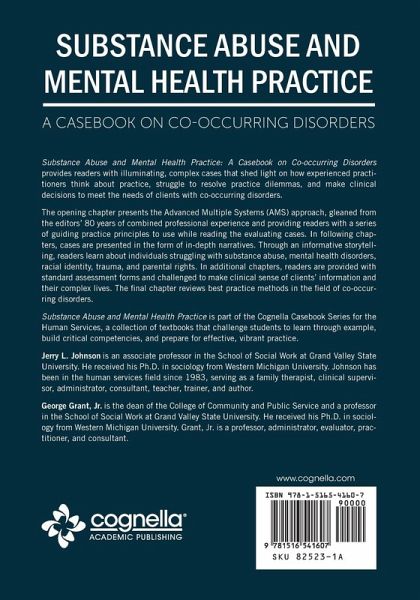 Substance Abuse and Mental Health Practice: A Casebook on Co-occurring Disorders provides readers with illuminating, complex cases that shed light on how experienced practitioners think about practice, struggle to resolve practice dilemmas, and make clinical decisions to meet the needs of clients with co-occurring disorders. The opening chapter presents the Advanced Multiple Systems (AMS) approach, gleaned from the editors' 80 years of combined professional experience and providing readers with a series of guiding practice principles to use while reading the evaluating cases. In following chapters, cases are presented in the form of in-depth narratives. Through an informative storytelling, readers learn about individuals struggling with substance abuse, mental health disorders, racial identity, trauma, and parental rights. In additional chapters, readers are provided with standard assessment forms and challenged to make clinical sense of clients' information and their complex lives. The final chapter reviews best practice methods in the field of co-occurring disorders. Substance Abuse and Mental Health Practice is part of the Cognella Casebook Series for the Human Services, a collection of textbooks that challenge students to learn through example, build critical competencies, and prepare for effective, vibrant practice. Jerry L. Johnson is an associate professor in the School of Social Work at Grand Valley State University. He received his Ph.D. in sociology from Western Michigan University. Johnson has been in the human services field since 1983, serving as a family therapist, clinical supervisor, administrator, consultant, teacher, trainer, and author. George Grant, Jr. is the dean of the College of Community and Public Service and a professor in the School of Social Work at Grand Valley State University. He received his Ph.D. in sociology from Western Michigan University. Grant, Jr. is a professor, administrator, evaluator, practitioner, and consultant.