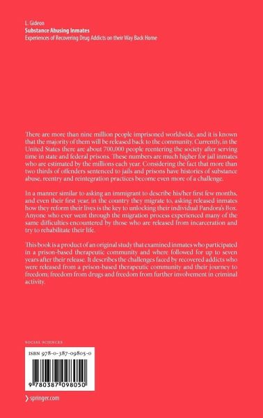 This book is a product of an original study that examined inmates who participated in a prison-based therapeutic community and were followed for up to seven years after their release. It will describe the challenges faced by rehabilitated addicts who were released from a prison-based therapeutic community and their journey to freedom; freedom from drugs and freedom from further involvement in criminal activity.