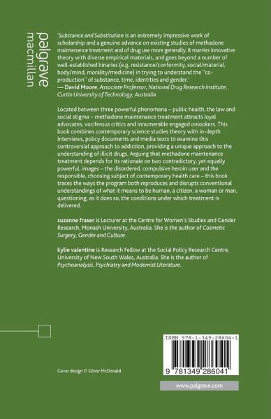 'Substance and Substitution is an extremely impressive work of scholarship and a genuine advance on existing studies of methadone maintenance treatment and of drug use more generally. It marries innovative theory with diverse empirical materials, and goes beyond a number of well-established binaries (e.g. resistance/conformity, social/material, body/mind, morality/medicine) in trying to understand the 'co-production' of substance, time, identities and gender.' - David Moore, Associate Professor, National Drug Research Institute, Australia.