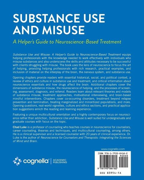 Substance Use and Misuse: A Helper's Guide to Neuroscience-Based Treatment equips helping professionals with the knowledge needed to work effectively with individuals who misuse substances and also underscores the skills and attitudes necessary to be successful with clients struggling with misuse. The book uses the lens of neuroscience to focus the art of helping, providing helping professionals with rich research, practical examples, and inclusion of material on the interplay of the brain, the nervous system, and substance use. Opening chapters provide readers with essential historical, social, and political context, a review of ethics and culture in substance use and treatment, and critical information about neuroscience essentials and how drugs affect the brain. Additional chapters cover the dimensions of substance misuse, the neuroscience of helping, and the processes of screening, assessment, diagnosis, and referral. Readers learn about relevant theories and models of substance misuse, treatment approaches, motivational interviewing, and brain-based mindful interventions. Chapters cover co-occurring disorders, treatment beyond relapse prevention and termination, treating marginalized and minoritized populations, and more. Opening questions, real-world vignettes, culture and ethics sections, and practical application suggestions enrich the reading and learning experience. Featuring a unique multicultural orientation and a highly contemporary focus on neuroscience rather than addiction, Substance Use and Misuse is well suited for undergraduate and graduate courses with focus on the topic.