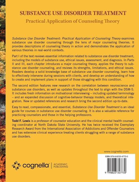 Substance Use Disorder Treatment: Practical Application of Counseling Theory examines substance use disorder counseling through the lens of major counseling theories. It provides descriptions of counseling theory in action and demonstrates the application of various theories in real-world contexts. Part I of the text reviews essential information related to substance use disorder treatment, including the models of substance use, ethical issues, assessment, and diagnosis. In Parts II and III, each chapter introduces a major counseling theory, applies the theory to substance use disorder counseling, and reviews its strengths, limitations, and ethical issues. Readers develop a solid knowledge base of substance use disorder counseling, learn how to effectively intervene during sessions with clients, and develop an understanding of how to create and implement plans in support of those struggling with this condition. The second edition features new research on the correlation between neuroscience and substance use disorders, as well as updates throughout the text to align with the DSM-5. It includes fresh information on motivational interviewing - including updated terminology - and an expanded discussion of cognitive-behavior therapy models, and theoretical integration. New or updated references and research bring the second edition up-to-date. Easy to read, compassionate, and essential, Substance Use Disorder Treatment is an ideal guide for courses in substance use disorder counseling. It is also a valuable reference for practicing counselors and those in the helping professions.