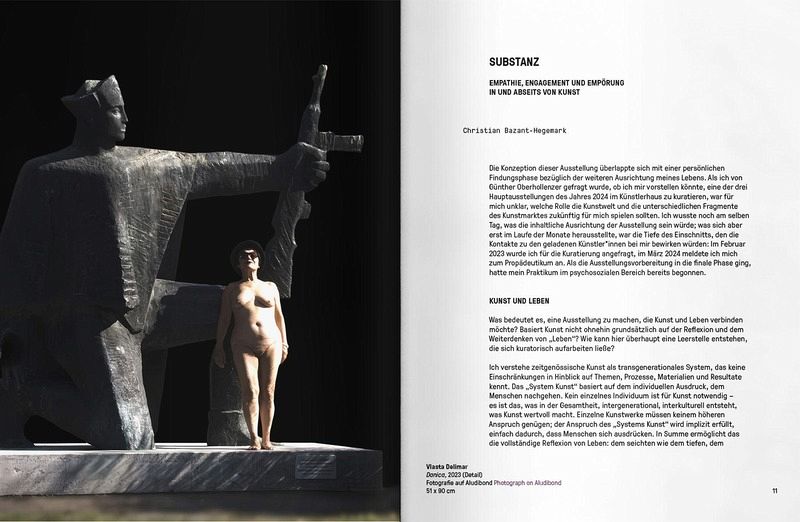 Die Ausstellung Substanz - Empathie, Engagement und Empörung in und abseits von Kunst verweist auf die Basis, aus der wir entstehen: unsere Menschlichkeit, unsere soziale Eingebundenheit und unseren Willen, zu gestalten und so das eigene Selbst mit seiner individuellen Positionierung in die Welt zu tragen. In exemplarischer Herangehensweise stellt die Ausstellung nationale wie internationale Kunstschaffende und Kulturakteur_innen vor, die in ihrer Produktion und/oder in privaten Initiativen gesellschaftlich handeln. Mit ihrer Kunst und ihrem Engagement möchten sie Wissen vermitteln und emotionale Prozesse anregen - sie wollen aufrütteln, Trost spenden und Hoffnung geben. So bilden einige Künstler_innen Communities, rufen Kampagnen ins Leben oder initiieren Förderprojekte. Andere nutzen ihre spezifische künstlerische Ausdrucksweise, um die Öffentlichkeit für dringliche Themen zu sensibilisieren, in Dialog zu treten oder selbst Position zu beziehen.