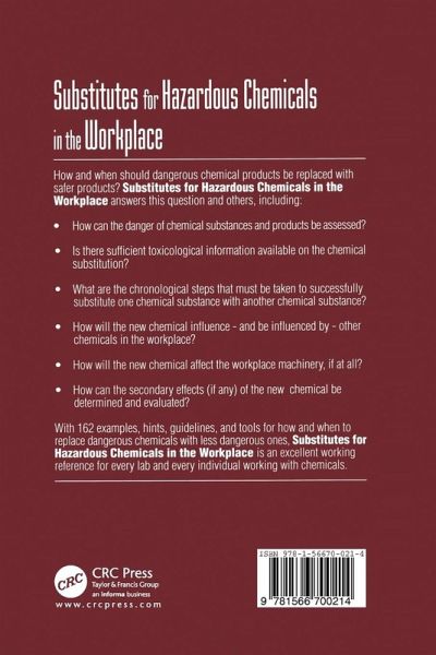 IntroductionDefinition of the Concept of SubstitutionThe Working Process of SubstitutionImplements for the Assessment of Substances and MaterialsCase StudyExamplesIndex of Professional GroupsGeneral Literature on SubstitutionHandbook Literature to be used in Toxicity AssessmentsReferencesBack Cover CopyHow and when should dangerous chemical products be replaced with safer products? Substitutes for Hazardous Chemicals in the Workplace answers this question and others, including:How can the danger of chemical substances and products be assessed?,Is there sufficient toxicological information available on the chemical substitution?,What are the chronological steps that must be taken to successfully substitute one chemical substance with another chemical substance?,How will the new chemical influence - and be influenced by - other chemicals in the workplace?,How will the new chemical affect the workplace machinery, if at all?,How can the secondary effects (if any) of the new chemical be determined and evaluated?With 162 examples, hints, guidelines, and tools for how and when to replace dangerous chemicals with less dangerous ones, Substitutes for Hazardous Chemicals in the Workplace is an excellent working reference for every lab and every individual working with chemicals.,