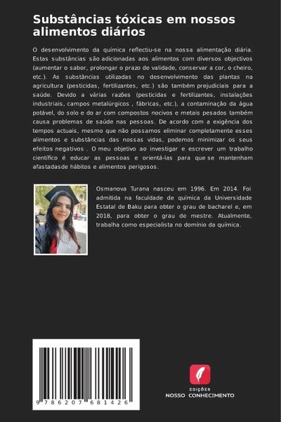 O desenvolvimento da química reflectiu-se na nossa alimentação diária. Estas substâncias são adicionadas aos alimentos com diversos objectivos (aumentar o sabor, prolongar o prazo de validade, conservar a cor, o cheiro, etc.). As substâncias utilizadas no desenvolvimento das plantas na agricultura (pesticidas, fertilizantes, etc.) são também prejudiciais para a saúde. Devido a várias razões (pesticidas e fertilizantes, instalações industriais, campos metalúrgicos , fábricas, etc.), a contaminação da água potável, do solo e do ar com compostos nocivos e metais pesados também causa problemas de saúde nas pessoas. De acordo com a exigência dos tempos actuais, mesmo que não possamos eliminar completamente esses alimentos e substâncias das nossas vidas, podemos minimizar os seus efeitos negativos . O meu objetivo ao investigar e escrever um trabalho científico é educar as pessoas e orientá-las para que se mantenham afastadasde hábitos e alimentos perigosos.