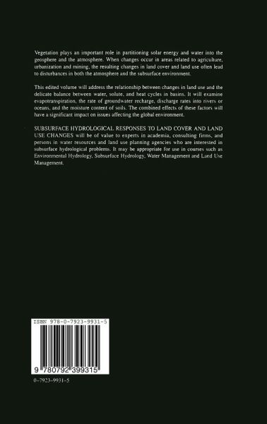 Subsurface Hydrological Responses to Land Cover and Land Use Changes will be of value to experts in academia, consulting firms, and planning agencies who are interested in subsurface hydrological problems. It may be appropriate for use in courses such as environmental hydrology, subsurface hydrology, water management and land use management.