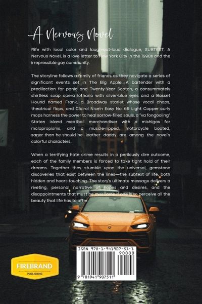 Rife with local color and laugh-out-loud dialogue, SUBTEXT, A Nervous Novel, is a love letter to New York City in the 1990s and the irrepressible gay community. The storyline follows a family of friends as they navigate a series of significant events set in The Big Apple. A bartender with a predilection for panic and Twenty-Year Scotch, a consummately shirtless soap opera lothario with silver-blue eyes and a Basset Hound named Frank, a Broadway starlet whose vocal chops, theatrical flops, and Clairol Nice'n Easy No. 6R Light Copper curly mops harness the power to heal sorrow-filled souls, a "va fongooling" Staten Island meatball merchandiser with a mishigas for malapropisms, and a muscle-ripped, motorcycle booted, sager-than-he-should-be leather daddy are among the novel's colorful characters. When a terrifying hate crime results in a perilously dire outcome, each of the family members is forced to take tight hold of their dreams. Together they stumble upon the universal, gemstone discoveries that exist between the lines-the subtext of life, both hidden and heart-touching. The story's ultimate message delivers a riveting, personal narrative of hopes and desires, and the disappointments that must be overcome if one is to perceive all the beauty that life has to offer.